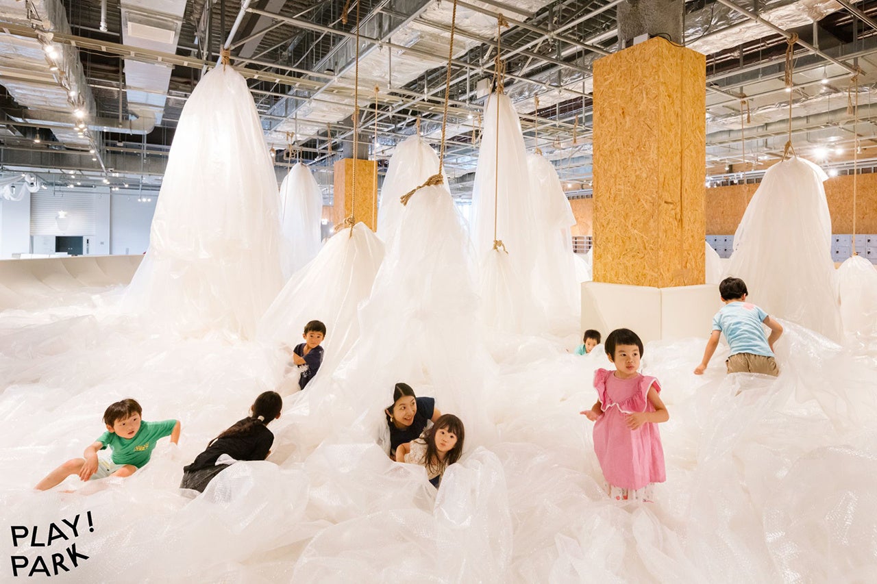 PLAY! PARKは、2020年6月に誕生した、子どもたちが自由な発想で遊べる、新しい屋内広場です。約1,000㎡の空間は、「ふじようちえん」の設計で知られる、手塚研究所によるデザインです。