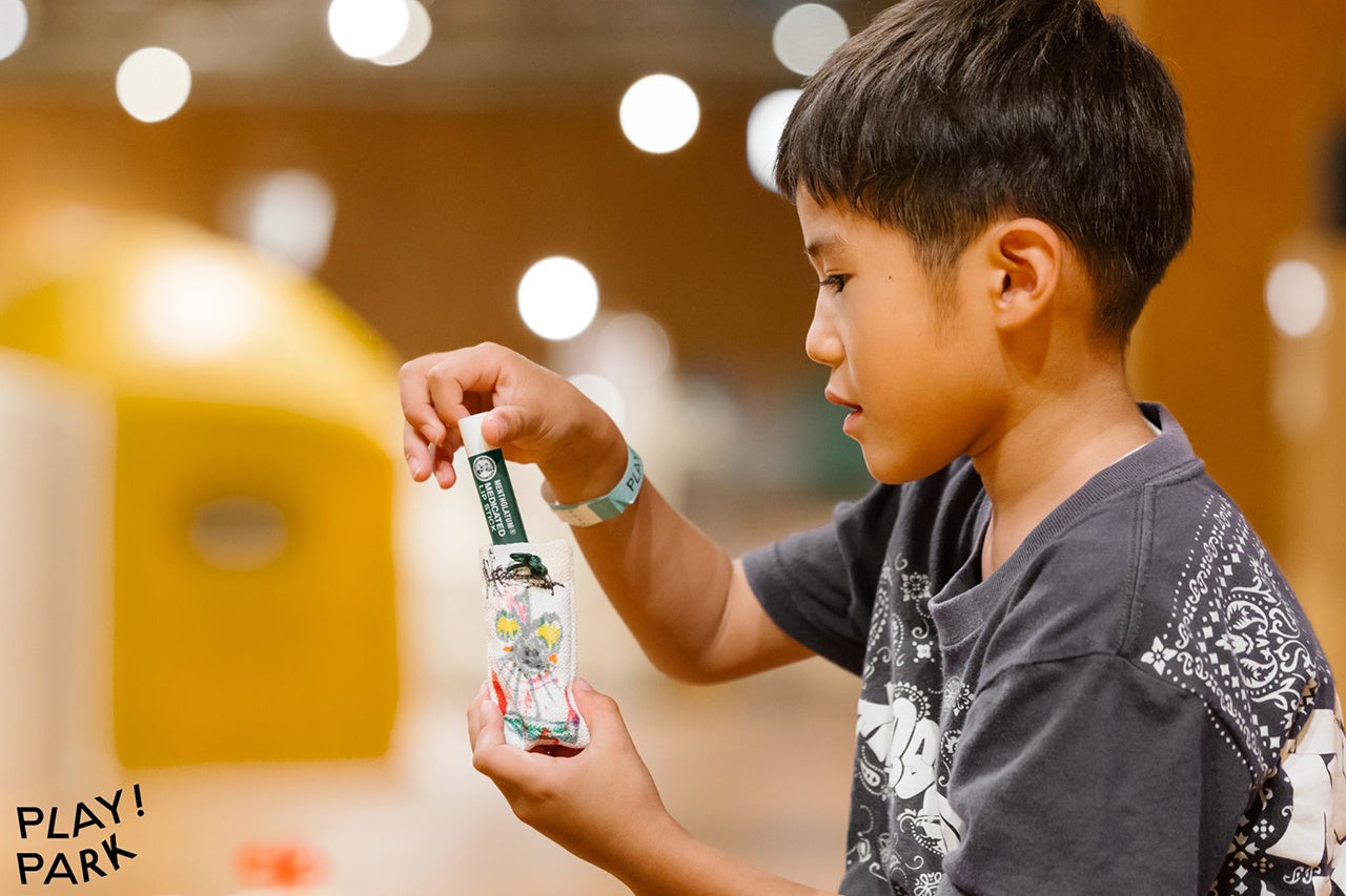 1,500本以上のリップケースを、自由に積んだり並べたり、文字を作ったりして遊べるコーナーです。自分だけの遊び方を発見できます。