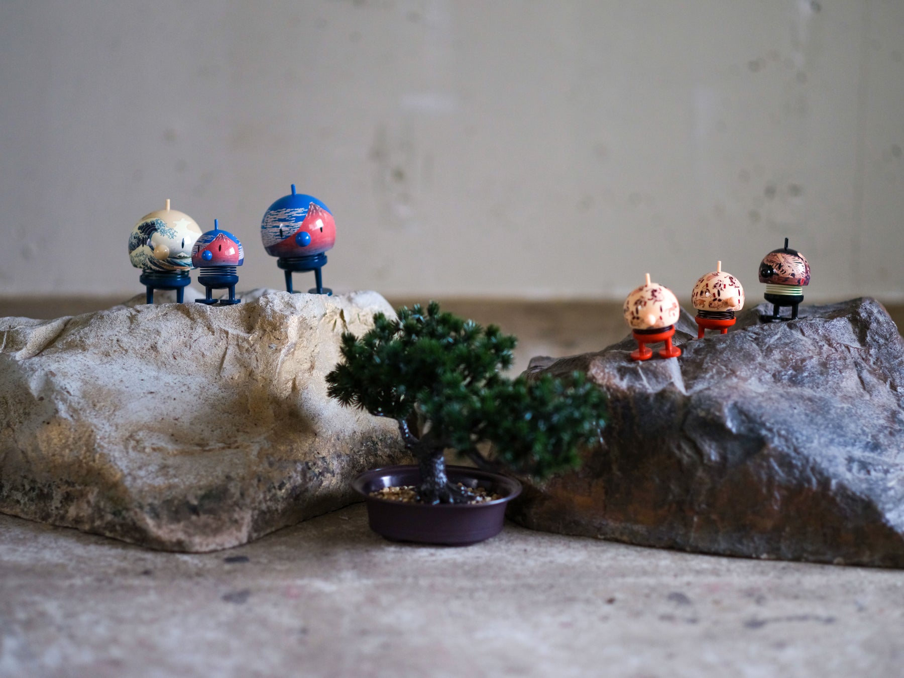葛飾北斎の波や富士、歌川国芳の猫や骸骨など、日本美術を象徴するモチーフを、Hoptimistの丸みを帯びたフォルムに落とし込み、立体として再構築。
