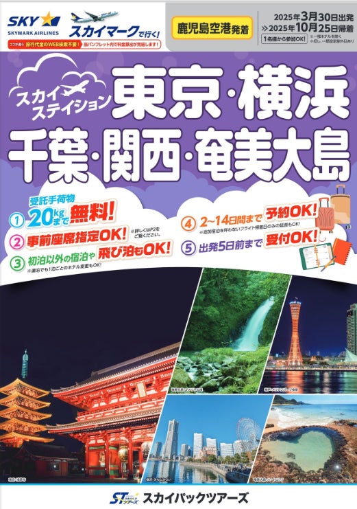 スカイパックツアーズ株式会社(本社:東京都中央区、社長:横山正巳)は、スカイマーク公式サイトで販売するダイナミックパッケージ「たす旅」で、「期間限定・九州発クーポンタイムセール!!」を2025年6月2日(月)12:00から2025年6月16日(金)12:00までの期間限定で行います。