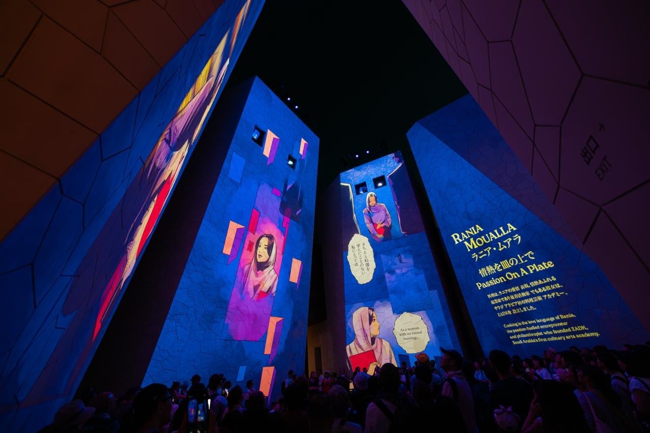 【大阪・関西万博サウジアラビア王国館】新しく夜のプロジェクション「Her Influence」をスタート、サウジアラビアの女性の成果をマンガで投影