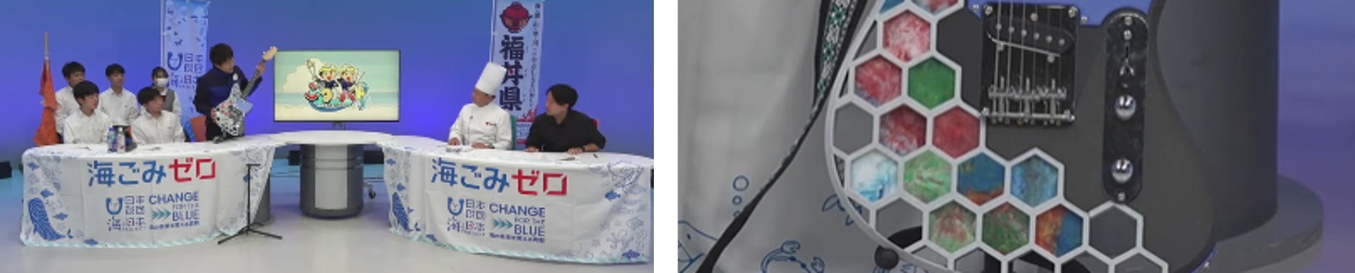 昨年「ふくい海洋ごみアクション選手権」でのグランプリとなった海洋ごみで楽器を作って演奏会をし、楽しく海洋ごみ問題を広めたいというプランのもと、TONKAN terrace 代表の黒田氏にギターを制作していただきました。演奏を聞いた高校生は「ごみからギターという楽しいものへの考え方が僕にはまだない発想だったので、それはすごく真似したいと思ってます」と話しました。