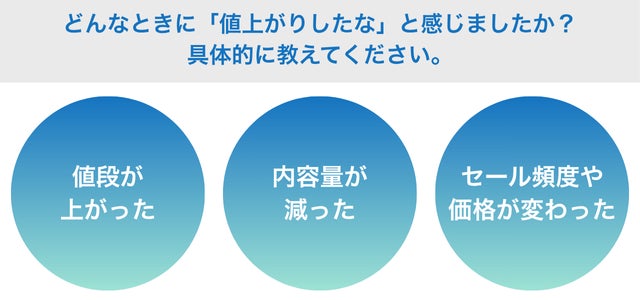 値上げを実感した要因は「価格の上昇」が最多。内容量減やセール減少も多かった。