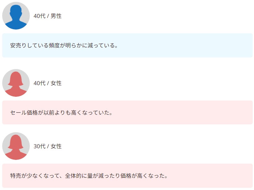 「セールが減った」「特売の割引率が低くなった」といった声も多かったです。