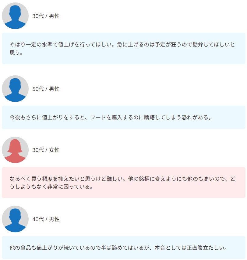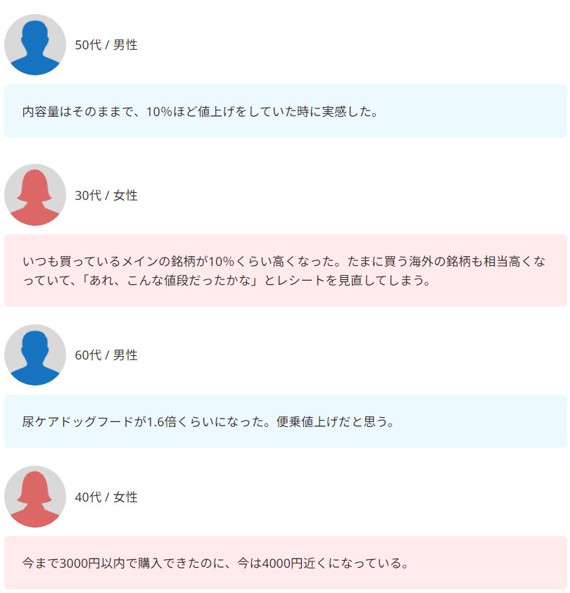 一方で、価格上昇を負担に感じる声も少なくありません。それでも「必要なものだから」「愛犬が気に入っているから」と、自分なりに納得しながら購入を続ける姿が見られました。