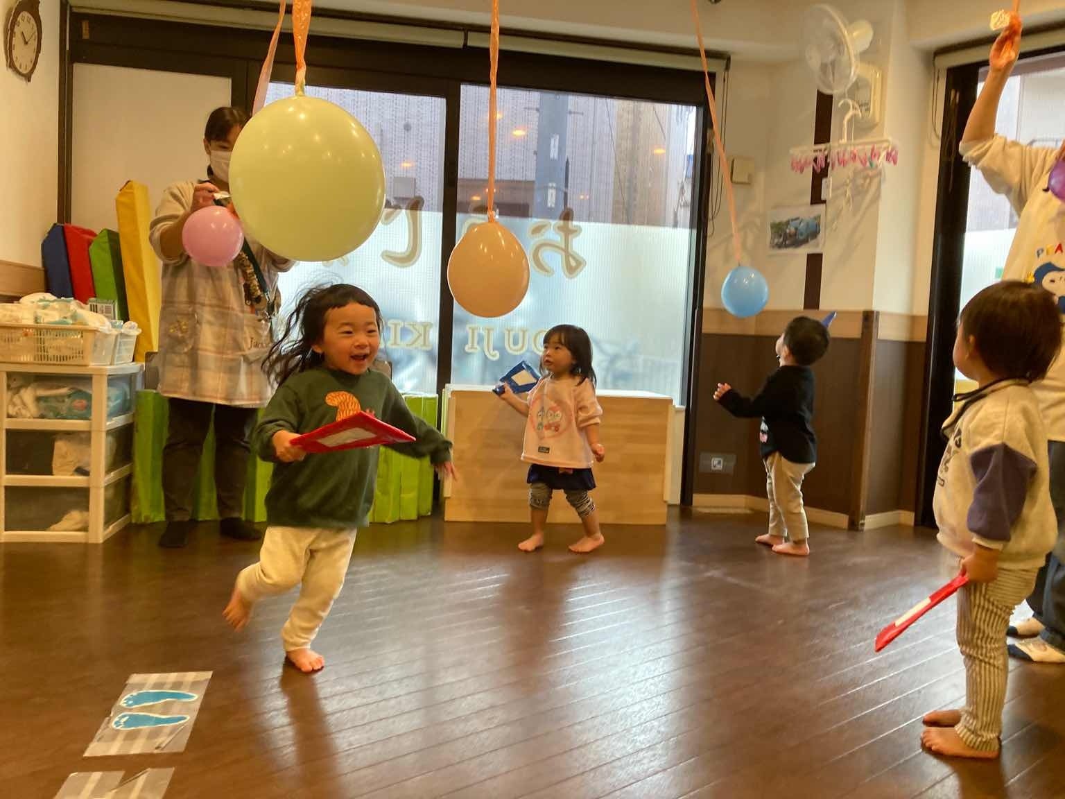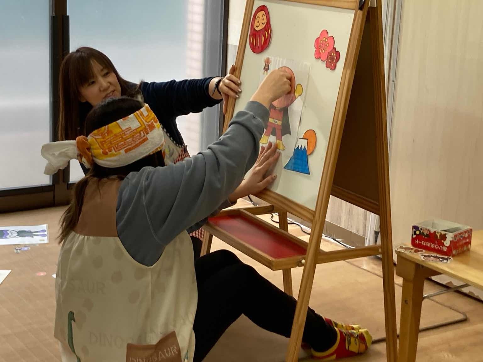 その後、福笑いやコマ回し、風船羽つきなどの伝統的なお正月遊びにも挑戦し、笑顔あふれる時間を過ごしました。