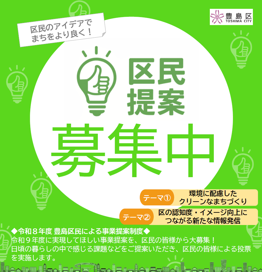 豊島区は、区民の声を区政に活かす取り組みとして「区民による事業提案制度」の募集を、本日4月10日(金)から開始します。