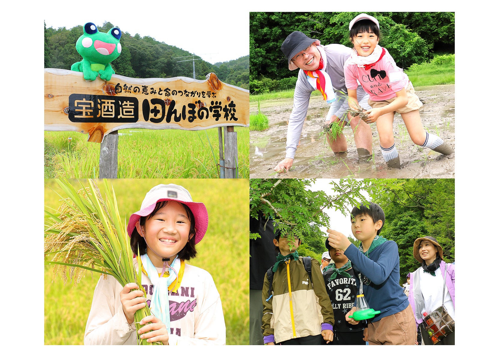 当社では、“宝酒造「田んぼの学校」”を通じた環境教育により、生物多様性の保全と地域活性化に貢献してまいります。