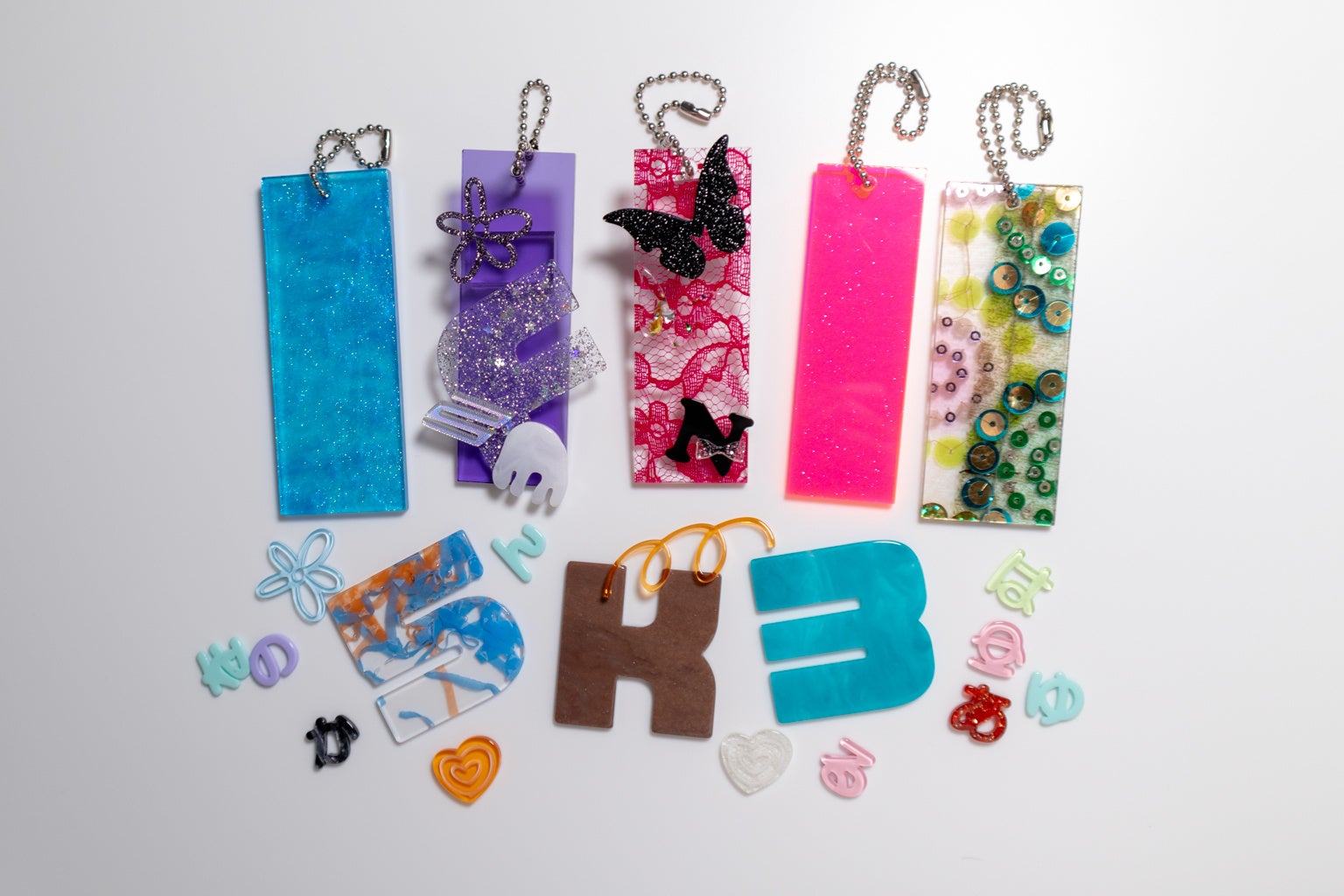 カット済みのパーツを自由に組み合わせて自分だけのオリジナル名刺ケースを制作できるほか、「Refine Acrylic」にめだまを付けて愛らしい“めだまモンスター”をつくる体験、さらに好きなイニシャルやパーツを自由に盛り付けて自分だけの「まいあくりる」を制作するなど、複数のプログラムの中からお好みのワークショップをお選びいただけます。