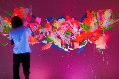 東京を拠点に活動する画家。10代でグラフィティと出会い、壁画中心の制作活動を始める。作品の制作過程をショーとして見せるライブペイントも数多く実施。現在は、蛍光塗料とブラックライトを使用し1枚の絵に2つの顔を持たせるアンビバレントな手法を駆使した"Day and Night"と呼ばれるシリーズを追求。都会の片隅に咲く花を主な主題とし、そこに街のネオンや星空のイメージを融合させて独自の世界を創り出している。