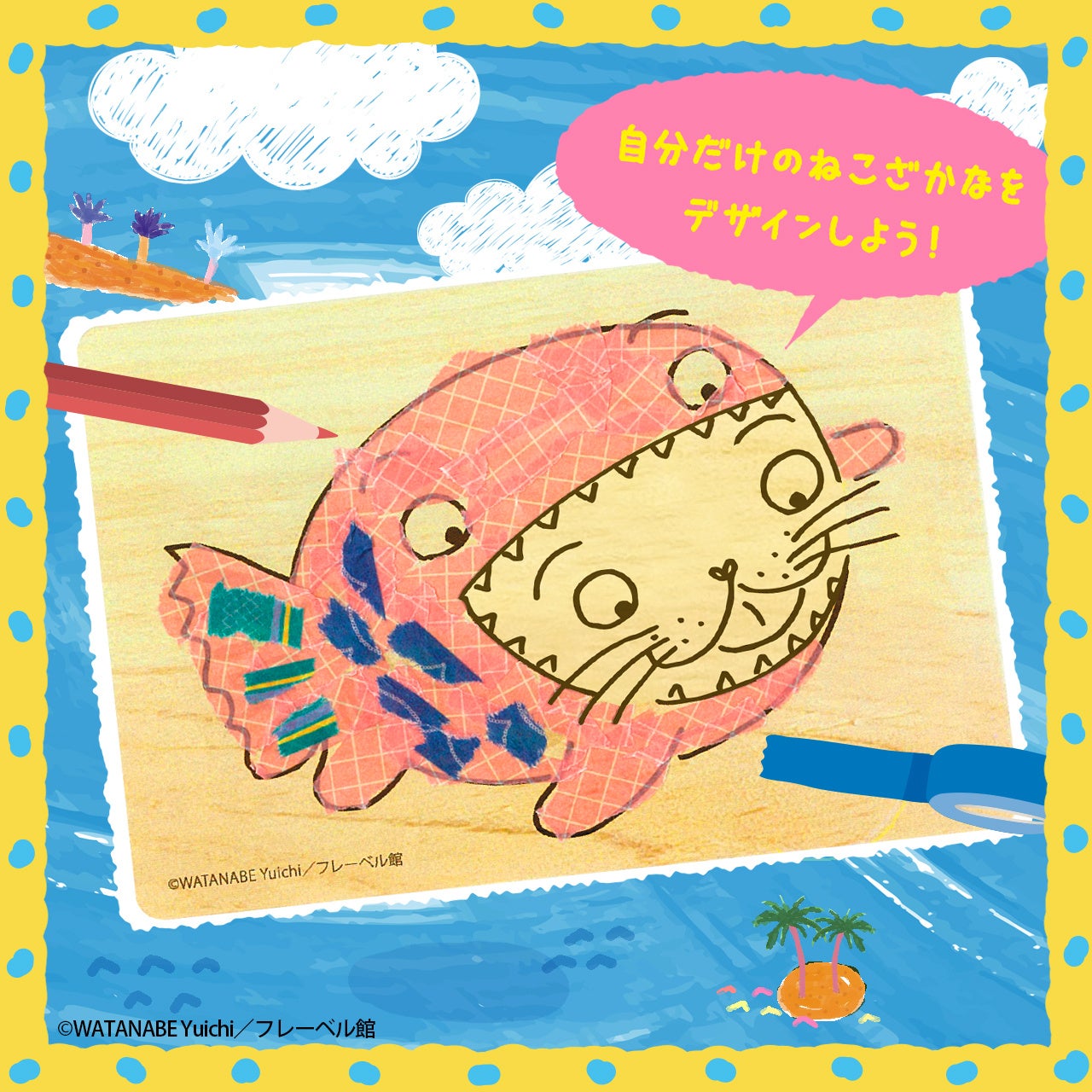マスキングテープや色鉛筆、ペンを使って自分だけのねこざかなを描けます