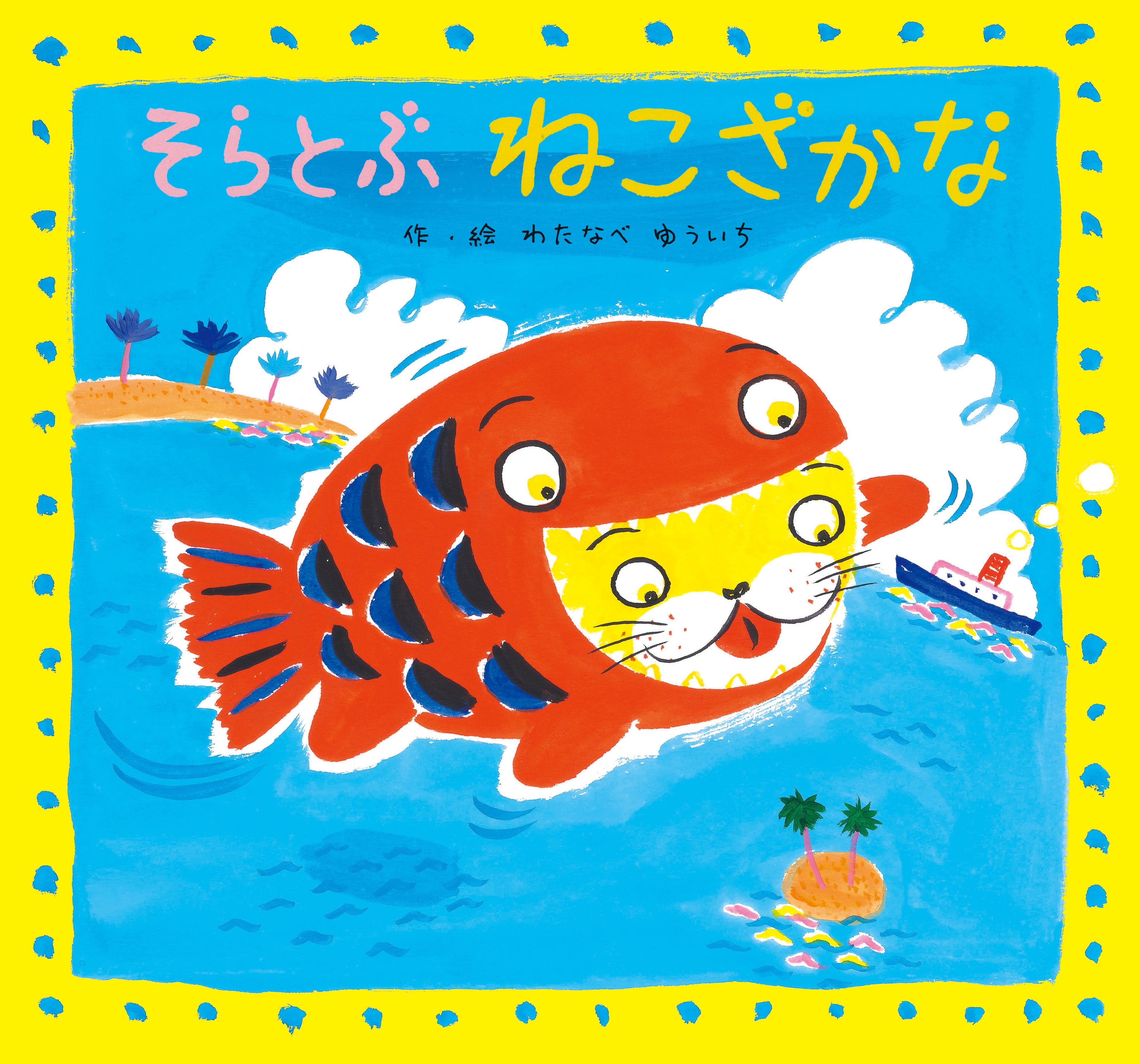 海を散歩中のねこざかなは、ひょんなことから空を飛んでしまいます。さて、その方法は?
