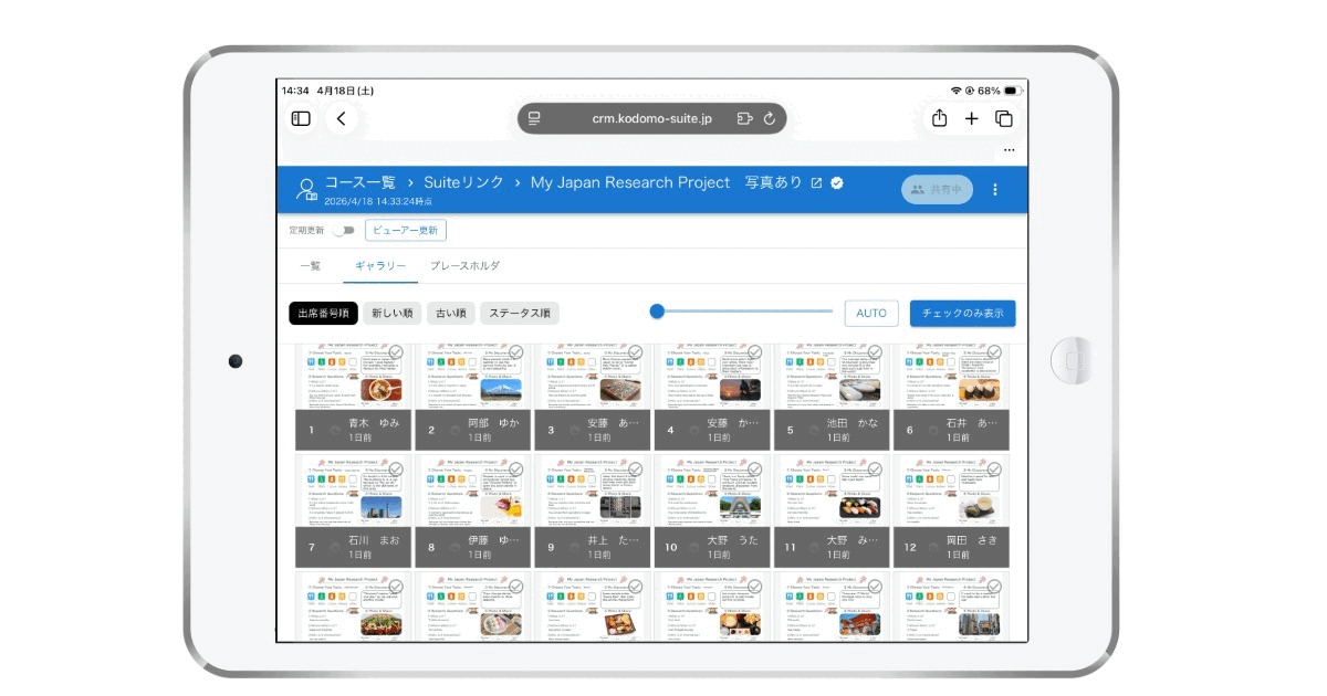 日本の学校現場で求められる出席番号順の一覧や取組み状況の全体表示を実現