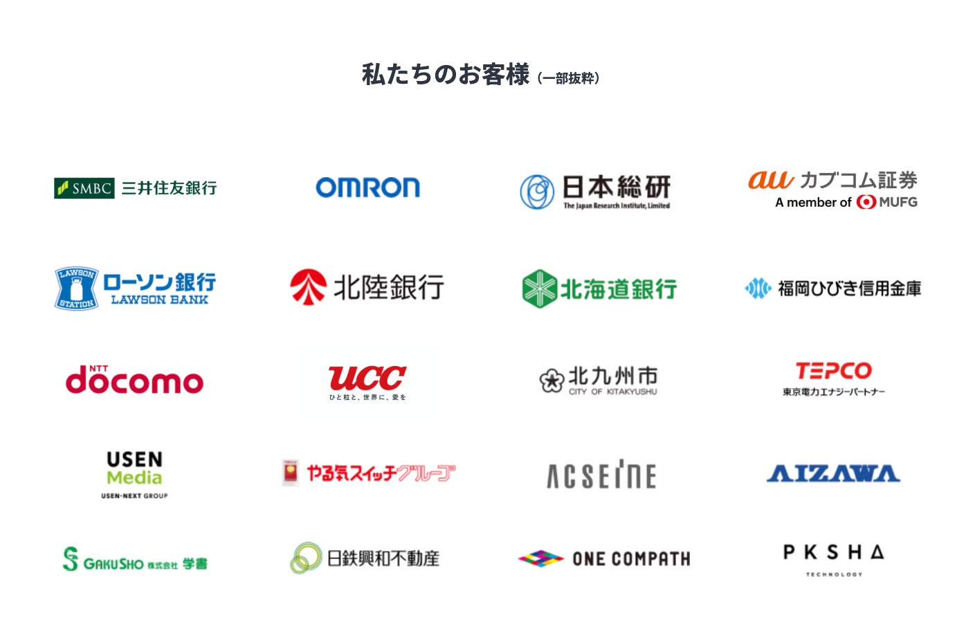 アジケは金融機関を中心に製造、通信など幅広い業界のお客様の、サービス設計、UI/UXデザイン、新規事業開発など様々なプロジェクトを支援しています。