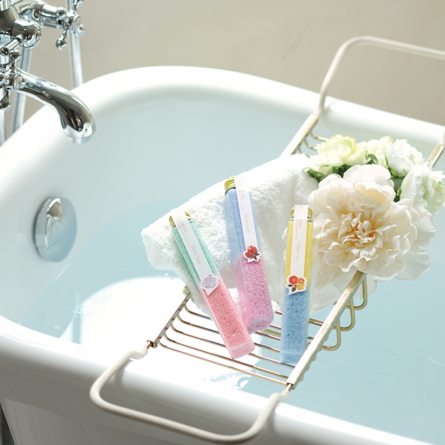 パステルカラーのバスビーズがバスルームを彩ります