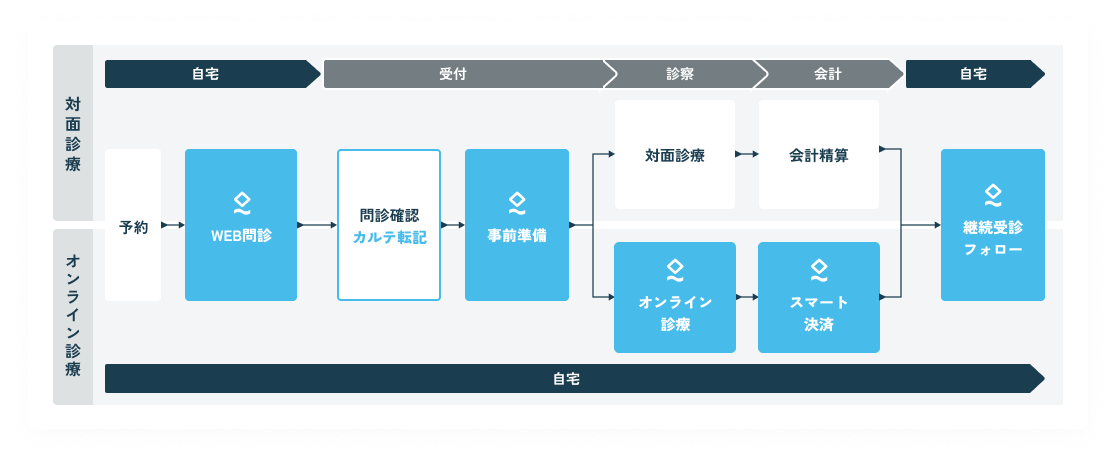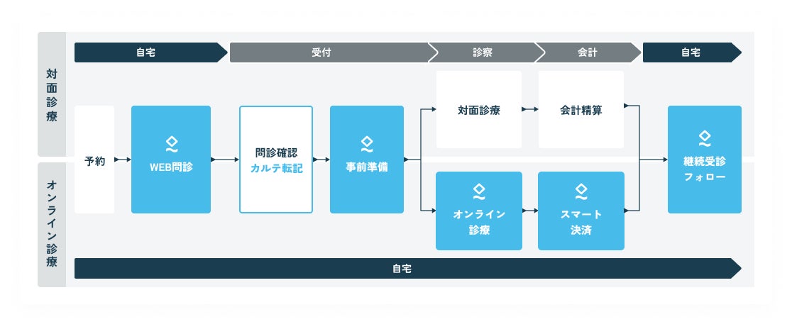対面診療・オンライン診療どちらも同じシステムを利用することで、医療者・生活者に負担をかけずに受診形態の多様化を実現