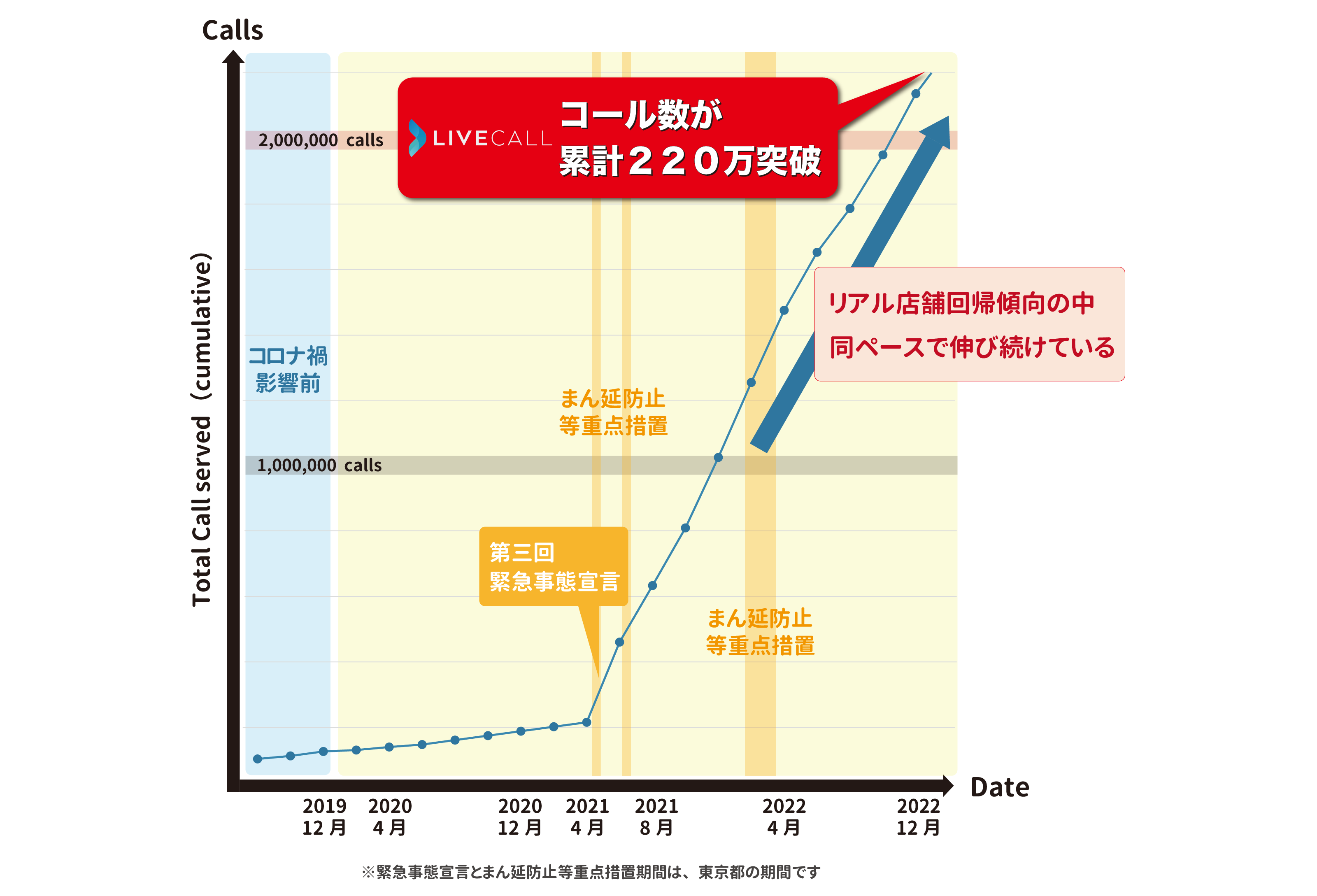 定着しつつあるオンライン接客。コール数が累計220万を突破!コロナ禍と変わらず、現在も増え続けている