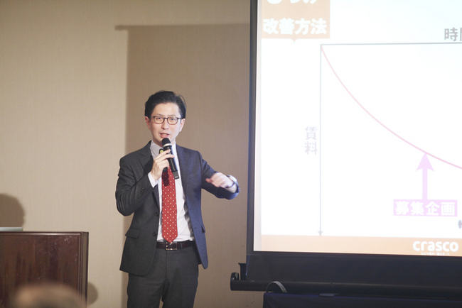 本セミナーでは、弊社代表取締役専務の小村より、空室を満室に導くために必要な要素と、初期投資が少なくても効果が見込める空室改善の手法についてオーナー様にご説明させていただきました。少子化に伴う空室率の増加に対処するため、インターネットで効率的な入居者募集を行う必要があること、物件ごとにターゲットを明確にし、よりよい働きかけを行う方法などを、弊社の取り組みと併せてご紹介させていただきました。セミナーには多くのオーナー様にご参加いただき、「丁寧で勉強になった」「数字や具体例があり、説得力があった」というお声をいただきました。