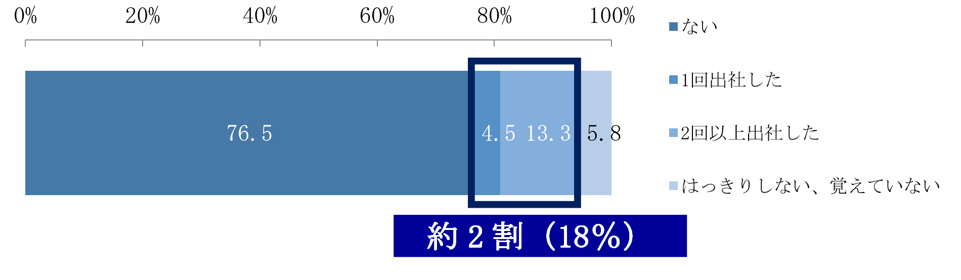 半数以上は「ない」と回答しているが、約2割(18%)の方が固定電話(会社や部門・グループの代表電話)対応のために出社した経験があることがわかりました。