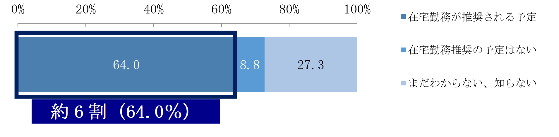 2022年以降も在宅勤務が推奨される予定の割合は6割以上(64.0%)。