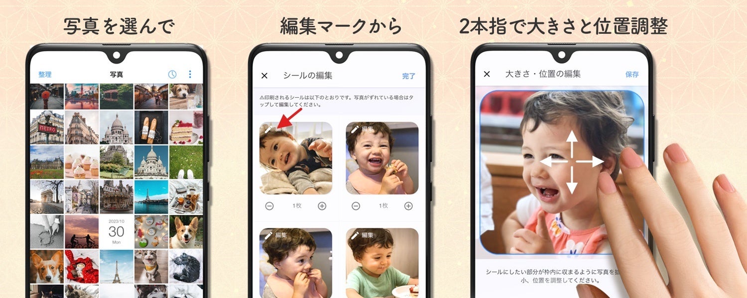 お手元のスマートフォンからお気に入りの写真を選ぶだけで、オリジナルのフォトシールを簡単に作成し、ご注文いただけます。