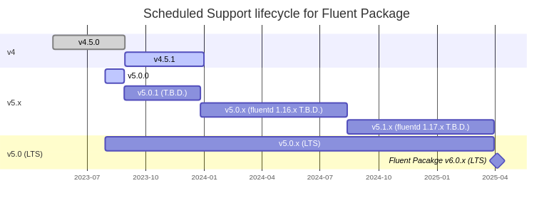 Fluent Package LTS | 事前アナウンス、長期(およそ2年 ごと) | セキュリティフィックス・バグフィックスを目的とした更新が容易。メジャーアップデートには計画的に準備が可能。 |