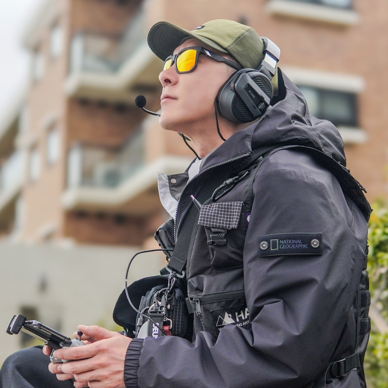 チームで連携しながらドローンの操縦・撮影を行うなど、騒音が大きく防水・防塵耐性が求められるような環境で、ハンズフリーのコミュニケーションが実現します。