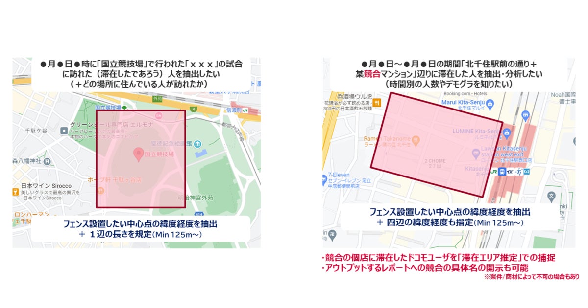株式会社D2C R(本社:東京都港区、代表取締役社長:豊永 雅史、以下D2C R)及び株式会社D2C(本社:東京都港区、代表取締役社長:高田 了、以下D2C)は、「流通小売」事業者様向けに、株式会社NTTドコモ(本社:東京都千代田区、代表取締役社長:前田義晃、以下ドコモ)が保有するデータを活用した分析メニューの1つである「商圏分析」と広告配信を組み合わせた新規ソリューション「商圏分析×ドコモ広告」の提供を開始いたしました。