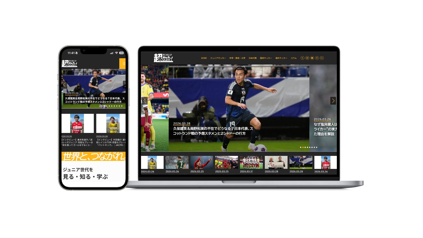 株式会社イミオは、サッカー専門メディア「超WORLDサッカー!」を全面リニューアルし、2026年4月1日に新サイトを公開しました。サイト構造やコンテンツ設計を一から再構築し、国内外のサッカー情報をトップカテゴリーから育成年代まで多角的に届けるメディアへと進化するとともに、メディア運営を共に推進していただけるパートナー企業・個人を広く募集します。
