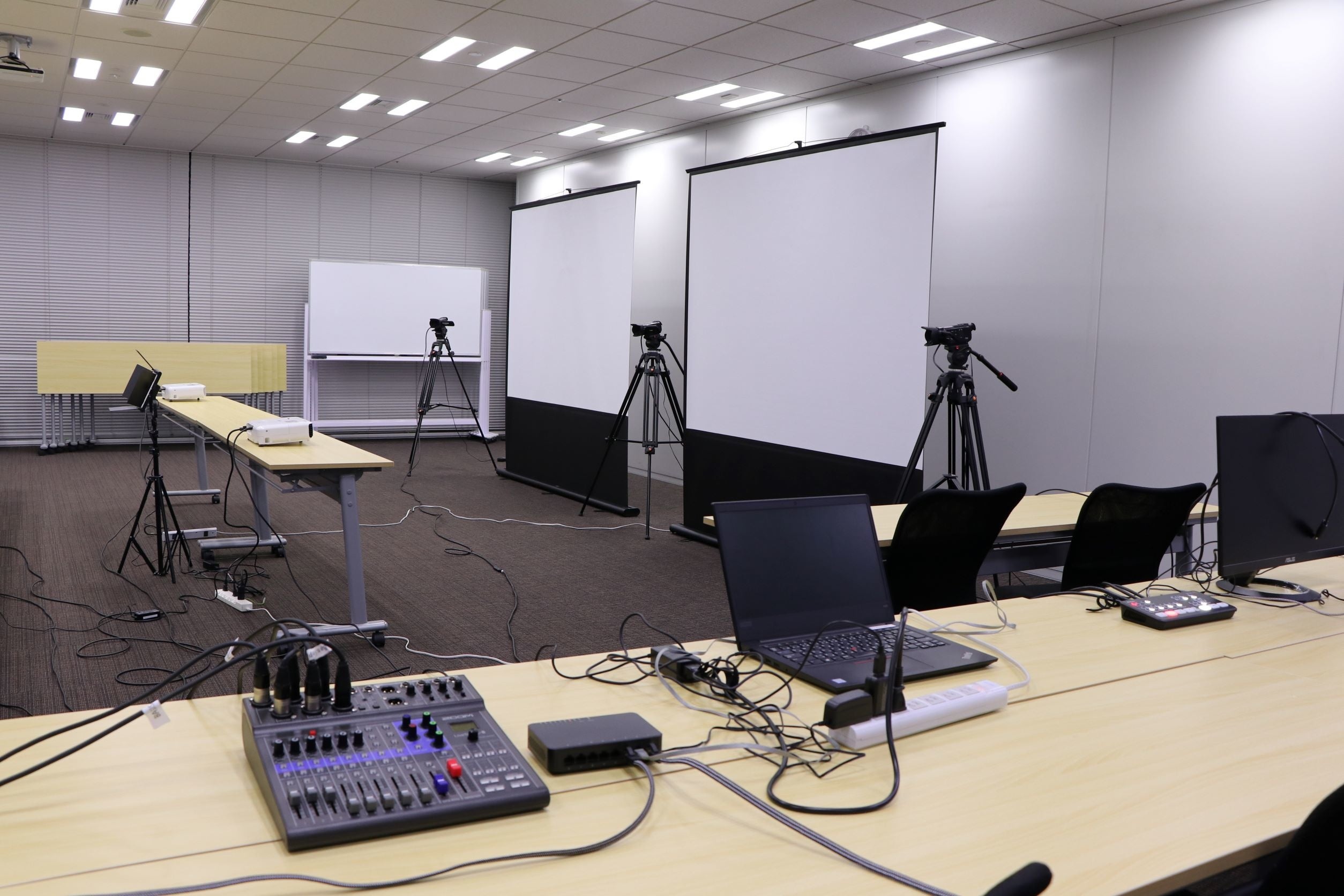 もちろん、海外拠点との接続(通訳有り)、リアル会場と複数配信拠点をまたいだディスカッション、複雑なスライド操作といった高度な内容を含む配信もスムーズに実現できます。