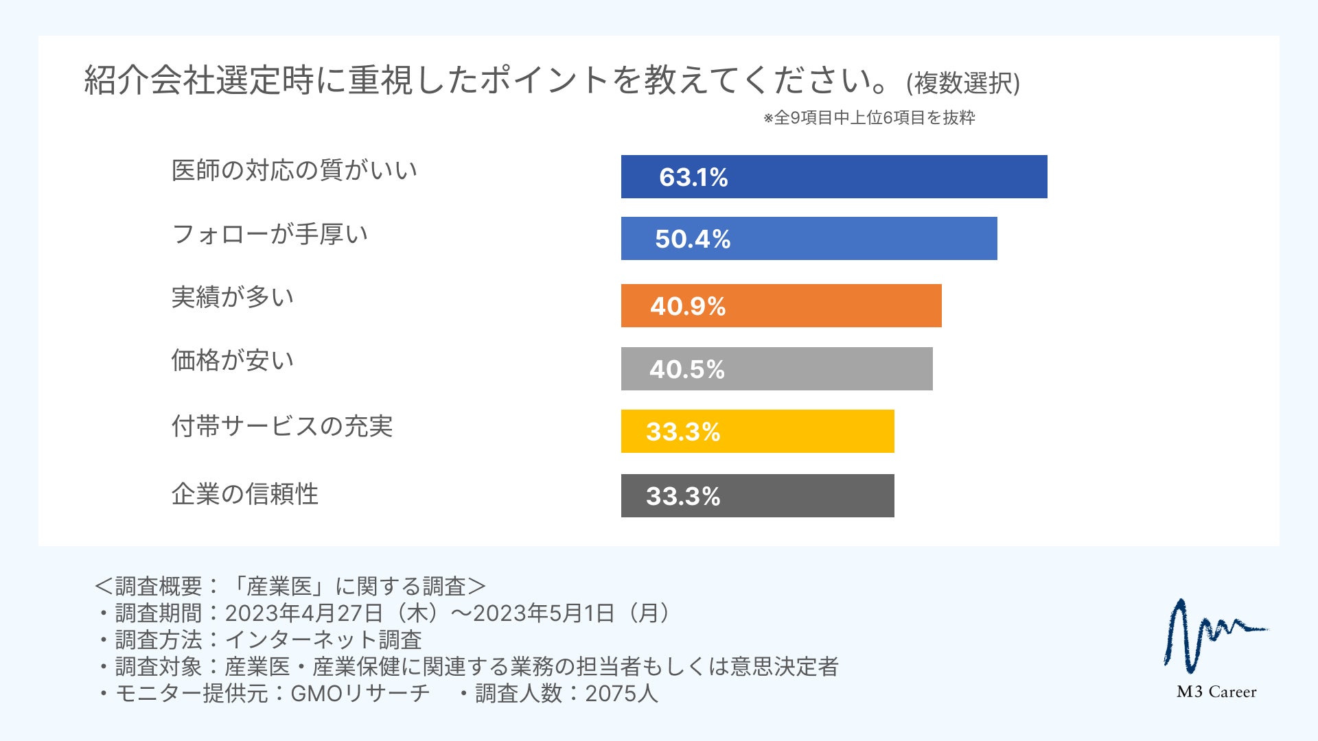 紹介会社の選定「産業医の対応」「フォロー」を重視