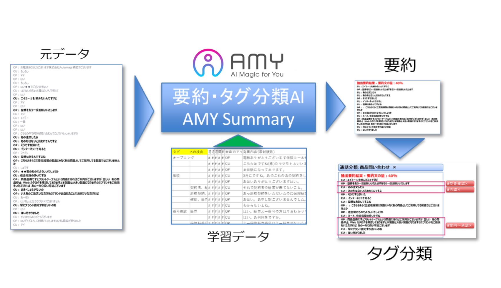 自然言語AIで文章の要約と発話のタグ分類を実現する「AMY Summary」を6月より提供開始