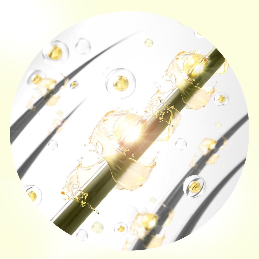 CMC補充成分※7、キューティクル補修成分※8、18-MEA成分※9、熱ブロック成分※6、帯電防止成分、紫外線ケア成分※10など、髪を保湿、補修、保護する成分を配合し、滑らかで指通りの良いツヤ髪へ導きます。また、これら成分の最適な配合に、熱をプラス(ドライヤーによるヘアブローやアイロンワーク)することで、ヘアスタイルをキープします。