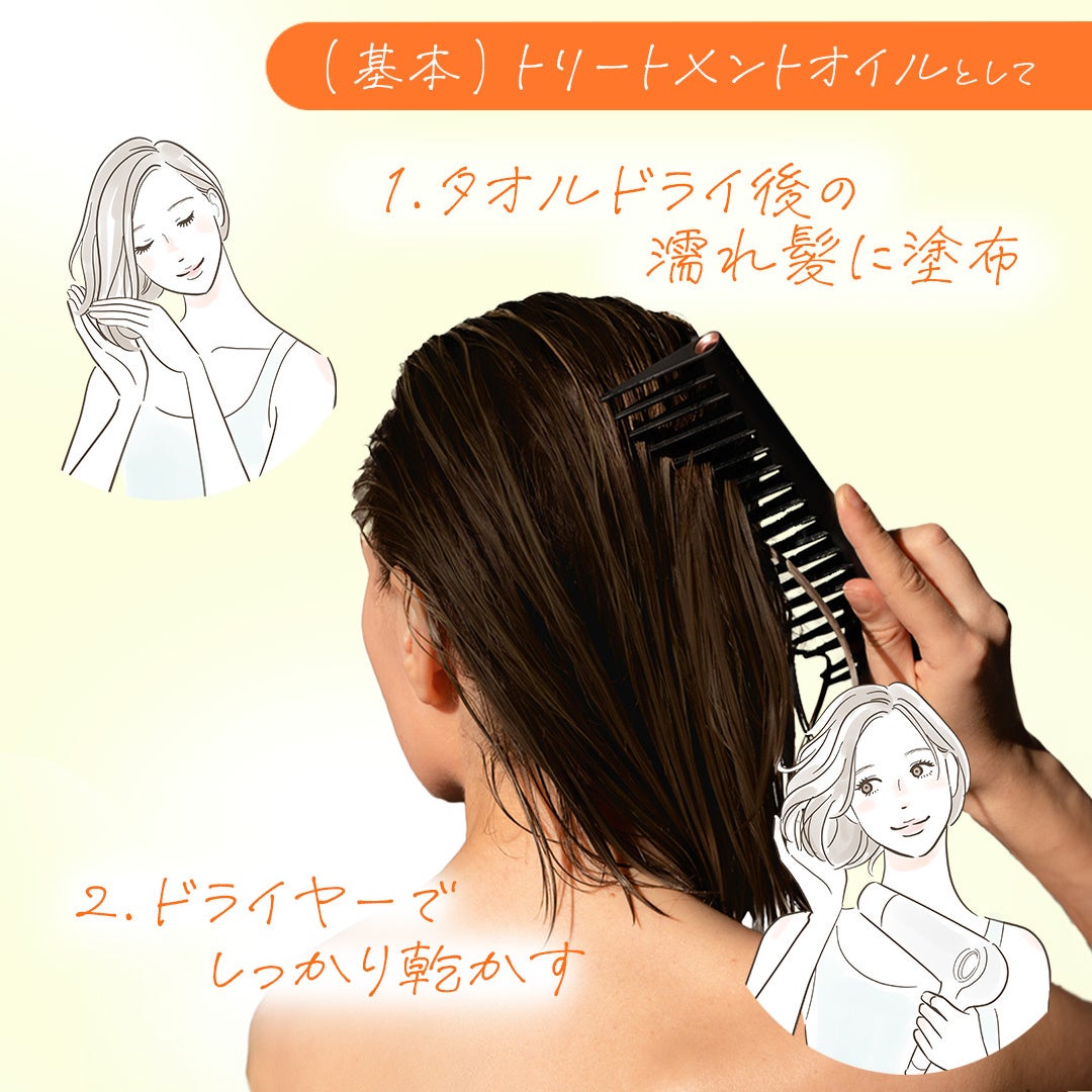 タオルドライ後の濡れ髪に塗布し、乾かしながら使用します。髪に潤いを与え、同時にダメージ補修も行いながら、