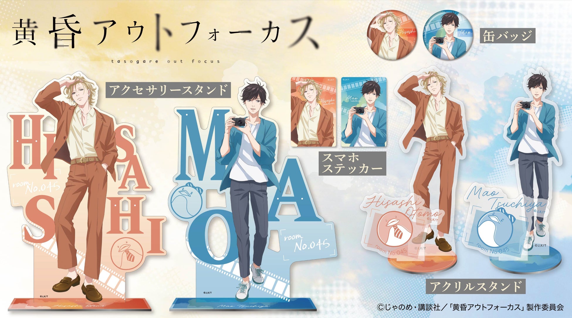 TVアニメ『黄昏アウトフォーカス』より、「大友寿」「土屋真央」の描き下ろしイラストを使用したアクリルスタンドや缶バッジなど新グッズが登場!