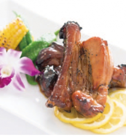 豚スペアリブを銀座はちみつと黒胡椒でスパイシーに焼き上げました。お口直しのハチミツレモンも添えて、ビールと一緒にお召し上がりください。