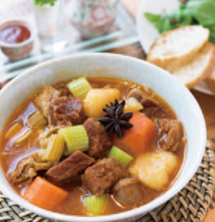 スパイスの複雑な味と銀座はちみつの甘さと肉の旨味が凝縮されたベトナム南部のビーフシチュー風のフォーです。