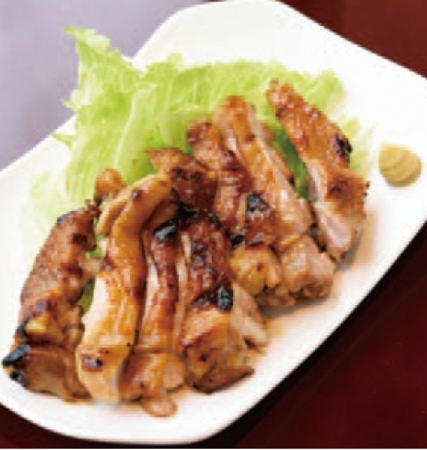 田舎味噌と銀座はちみつを鳥もも肉に塗り、香ばしく炭火焼きしました。