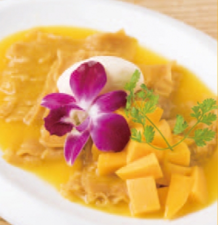 沖縄県産マンゴーと沖縄県で有名なブルーシールアイスを使ったシュゼットです。