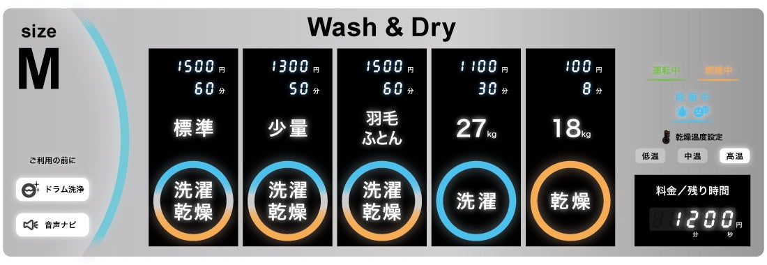 乾燥機による売上構成比は約65%(一人単価約500円〜600円)ですが、洗濯乾燥機では売上構成比が約75%(一人単価約800円〜1,200円)にアップ。収益率も上がります。