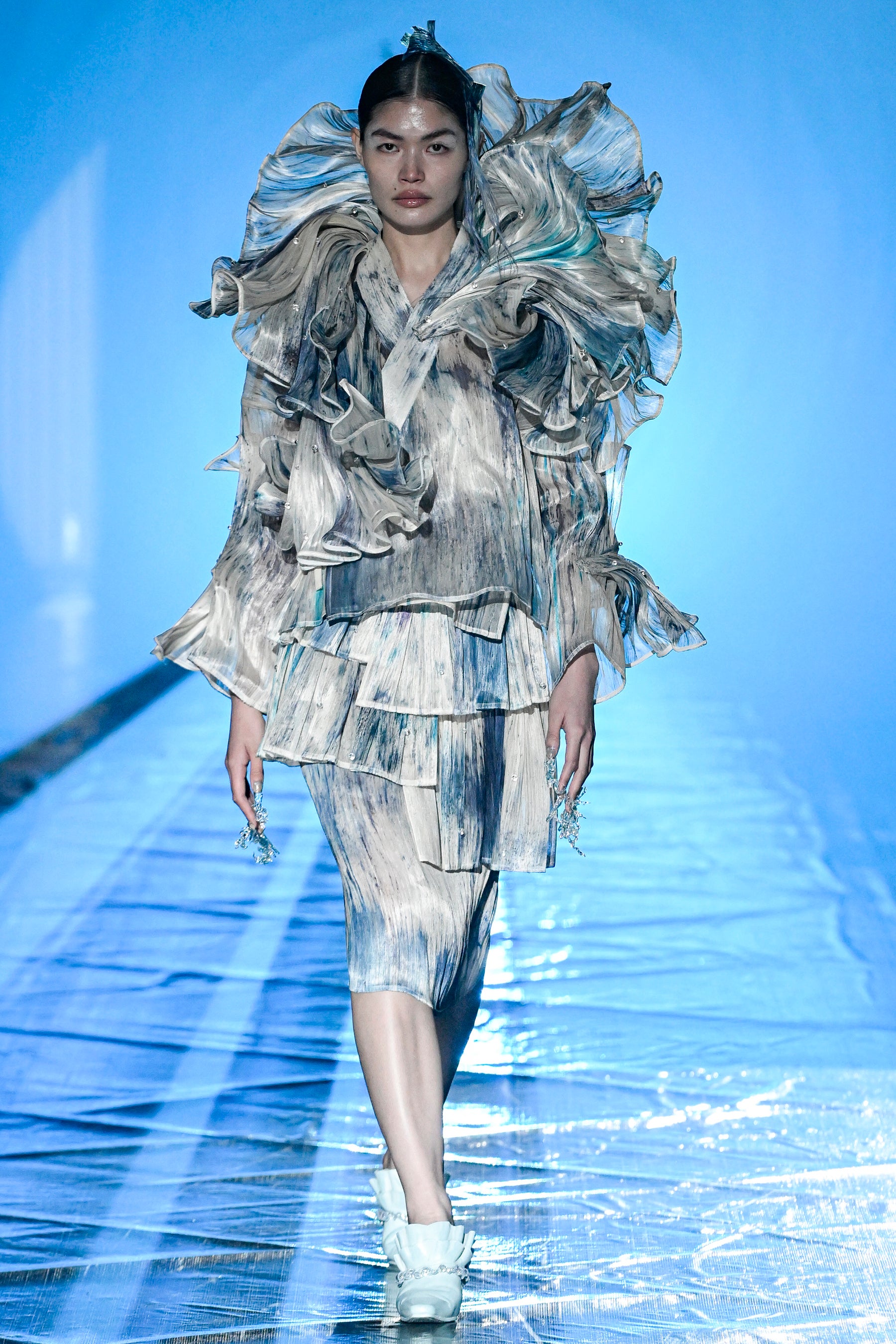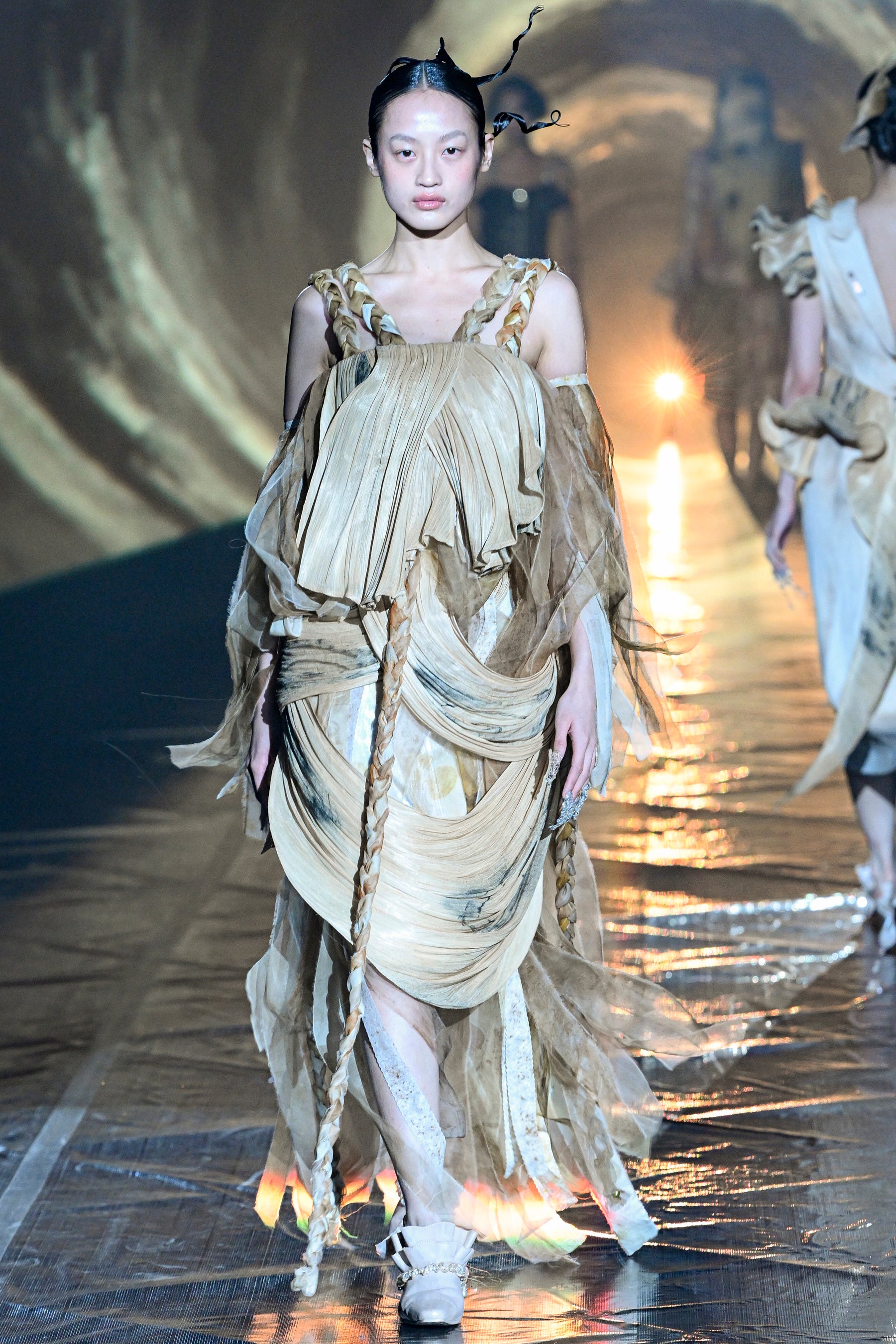 SISIOの2025年秋冬コレクション「ANITYA <諸行無常>」は、デザイナー シャーロット・シャオの旅路と自然への深い敬愛から生まれました。アイスランドとグリーンランドでの孤独な体験、ロサンゼルスでの気候危機の現実など、自然的現象が織りなす無常の美を、「成・住・壊・空」の世界の生成消滅を説明する四つの時期の循環が説かれた仏教哲学と、現代科学の視点を交え、共鳴させます。
