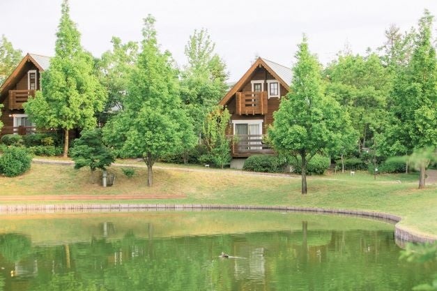 敷地内には、アメリカ、カナダ、フィンランド、スウェーデンの4カ国から輸入したログハウスが14棟あります。三角屋根の光景は異国のようで、別荘感覚で過ごすことができます。