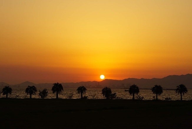 大阪湾に面し、「日本夕陽百選」に選ばれた夕景の名所です。六甲山から淡路島、さらには四国の山容まで眺めることができ、空がオレンジ色に染まるころ、海上に光の道が走り、きらめく夕陽と穏やかに表情を変える海景に心癒されます。