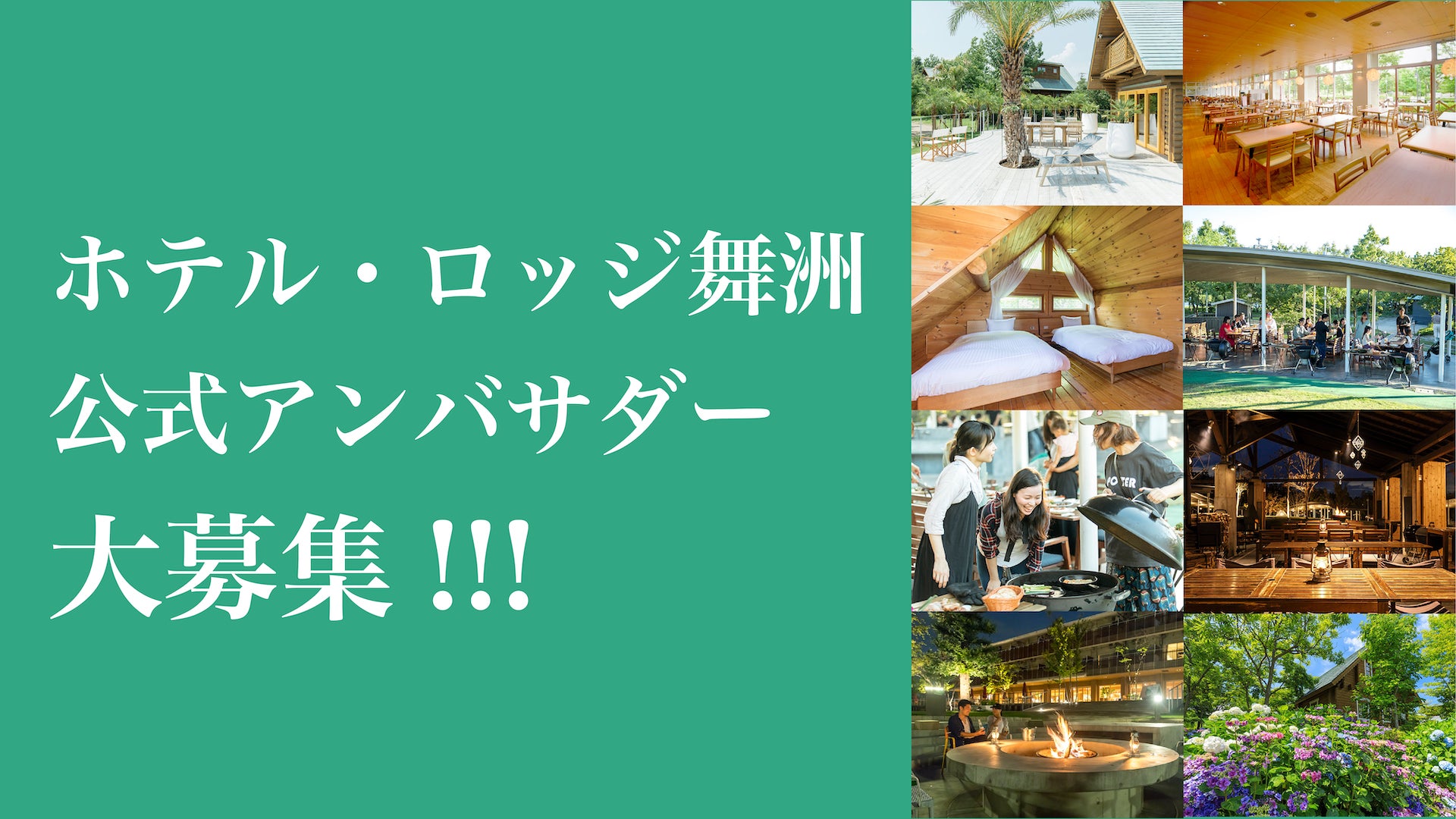 ホテル・ロッジ舞洲の考えるエシカルリゾートに共感し、共に「エシカルプラン」を創ってくれる仲間、Instagramの投稿を通してロッジ舞洲の素敵な情報を発信してくださる仲間、コンテンツをシェアしていただける仲間を募集致します。