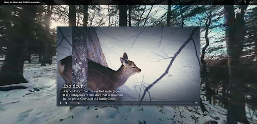 空間内に散りばめられた22個のアイテム一つ一つがDEBO氏の木彫作品やライフストーリー、阿寒湖の生態系を伝える内容になっており、すべてのアイテムを集めることで、アイヌ文化や自然環境への理解度を高めることができます。映像やウェブコンテンツを多層的に組み合わせ、深く没入感のある体験を提供することで、物理的距離に捉われない関係人口の創出や観光による来訪促進を目指します。