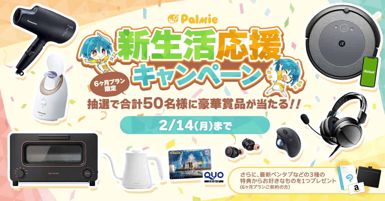 【合計50名様に豪華賞品が当たる!】お絵描き講座パルミーが新生活応援キャンペーンを開催!