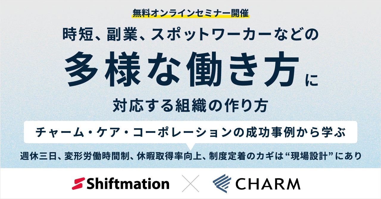 株式会社チャーム・ケア・コーポレーションの実例をもとに、柔軟な働き方に対応したシフト設計の実践を紹介(主催:株式会社シフトメーション)