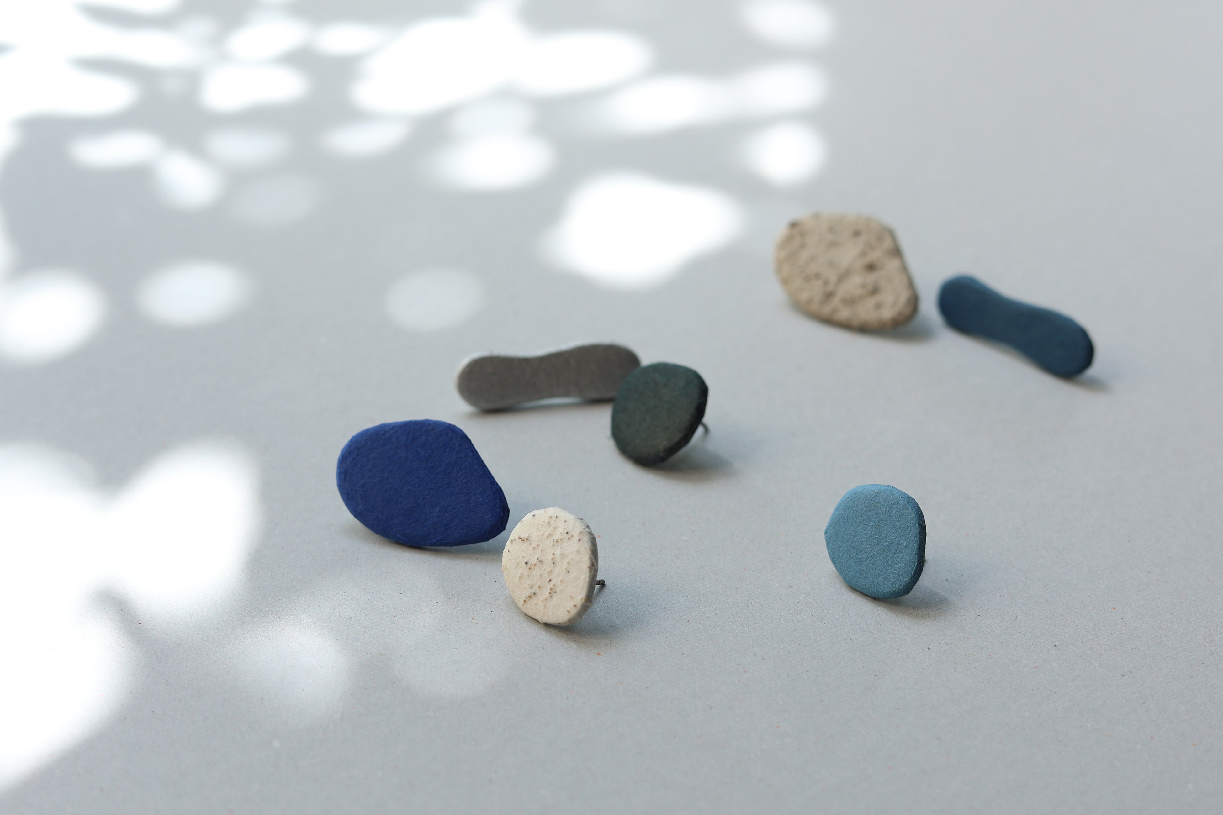 使われているのはすべて手漉きの越前和紙。ふすま紙やインテリアを手がける中で生み出されたさまざまな和紙と、和紙原料をぽとっと落として模様を生む独自技法から着想を得たゆらぎのあるデザインが特徴です。砂やコーヒーを練り込んで漉いた質感など、それぞれの表情をお楽しみください。価格:税込2,750円~