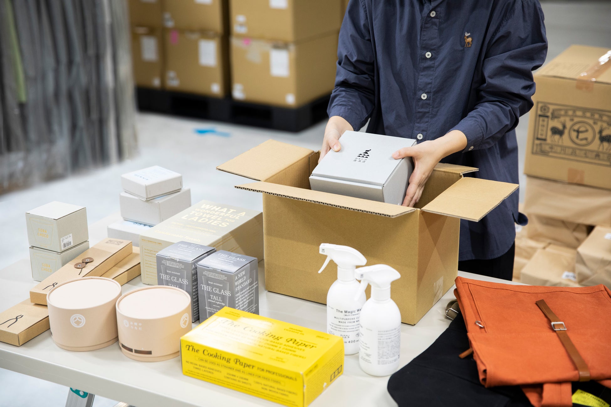出店ブランドは、在庫を中川政七商店に預けるだけ。同社の物流システムを活用し、商品発送および問合せに全て対応します。
