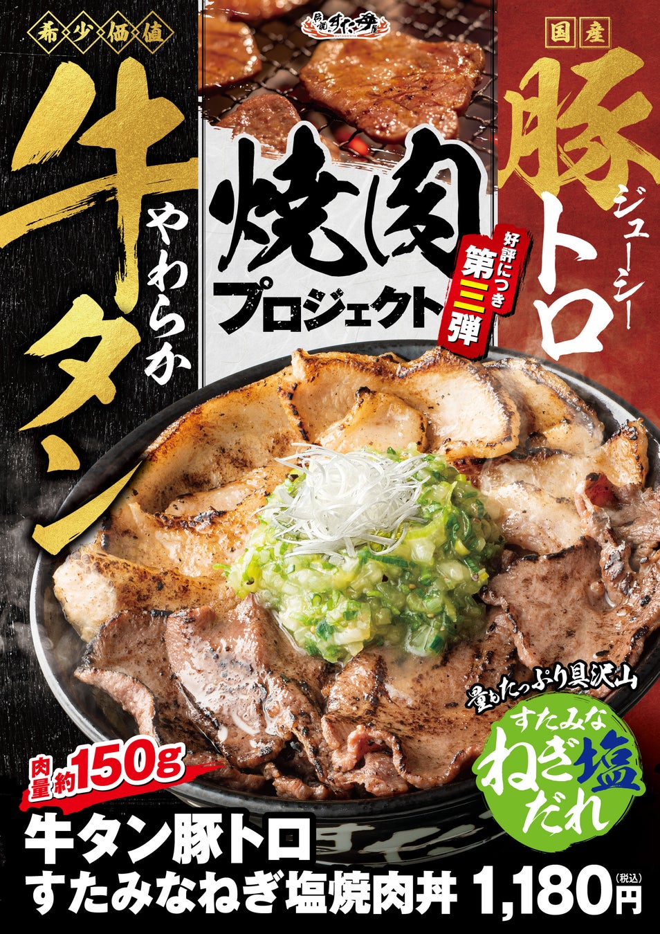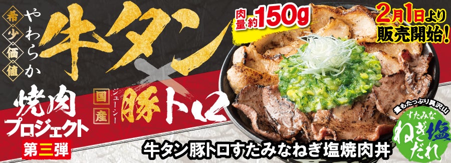 『焼肉プロジェクト』、大好評につき第3弾が登場。2月1日(木)から全国のすた丼屋で『牛タン豚トロすたみなねぎ塩焼肉丼』を販売いたします。